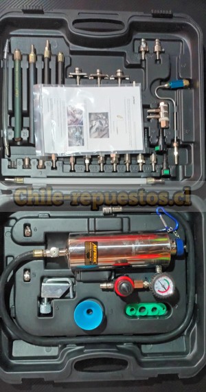 El AUTOOL C100 es un kit de limpieza de inyectores y sistema de combustible por barrido diseñado para limpiar inyectores, cámaras de combustión y válvulas de admisión sin desmontarlos. Compatible con vehÃculos de gasolina de EE. UU., Asia y la UE, utiliza adaptadores de alta presión para inyección directa o EFI. CaracterÃsticas y Beneficios Principales: * Limpieza sin desmontaje: Limpia inyectores, el cuerpo del acelerador y el sistema de combustible sin necesidad de desarmar el motor. * Compatibilidad Universal: El kit incluye múltiples adaptadores para casi todos los automóviles y camiones ligeros. * Sistema Presurizado: Permite limpiar con el motor en marcha utilizando aire comprimido (normalmente configurado a 43 PSI o 3 bares) para empujar el limpiador a través de los inyectores. * Versatilidad: Limpia sistemas de combustible de alta y baja presión. * Mantenimiento Preventivo: Se recomienda usar cada 6 a 8 meses para asegurar un rendimiento óptimo del combustible y limpieza de inyectores.